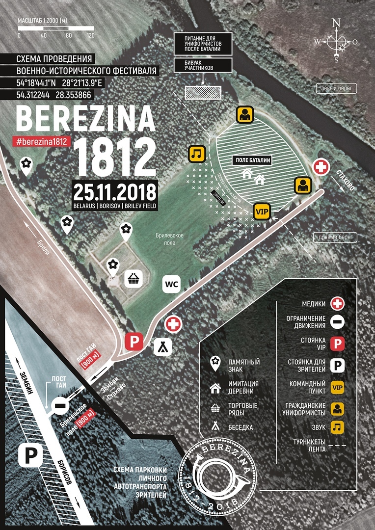 Усадьба Бивак спешит сообщить, что 24-25 ноября на Брилёвском поле в Борисовском районе состоится военно-историческая реконструкция сражений 1812 года, которая проиллюстрирует события переправы армии Наполеона через Березину у деревень Студенка и Брили.